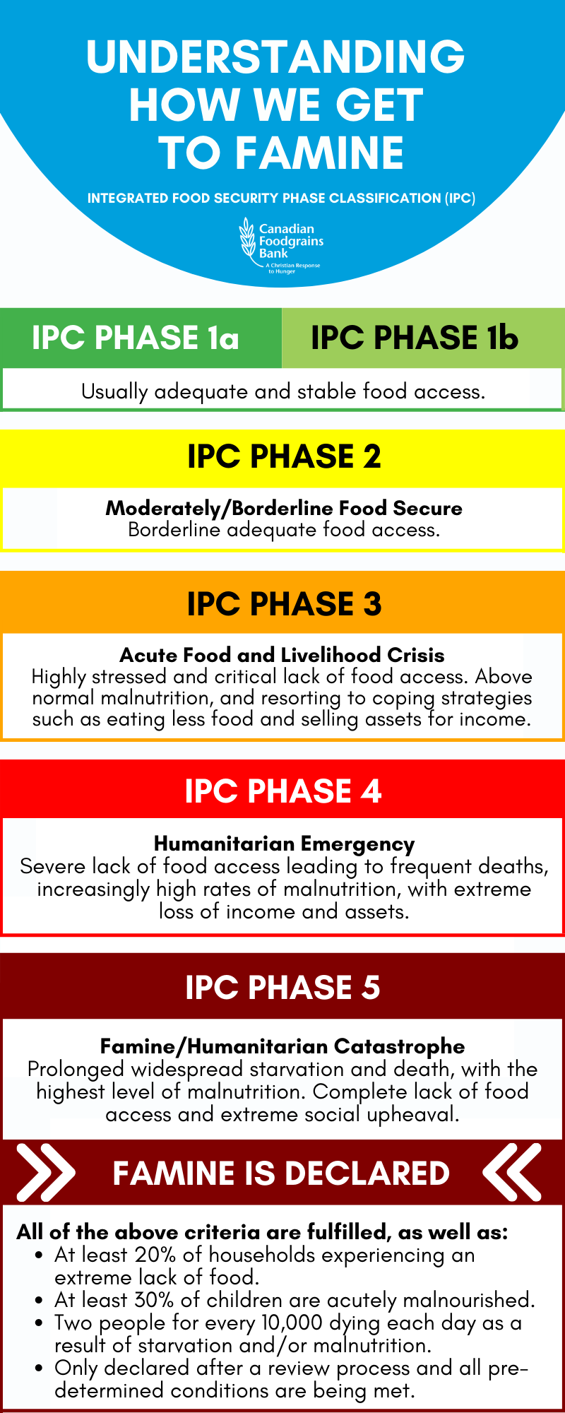 The Integrated Food Security Phase Classification (IPC) is multi-partner initiative used by the humanitarian sector to determine and understand the severity of food insecurity in a community. This is where we get our warning signs.